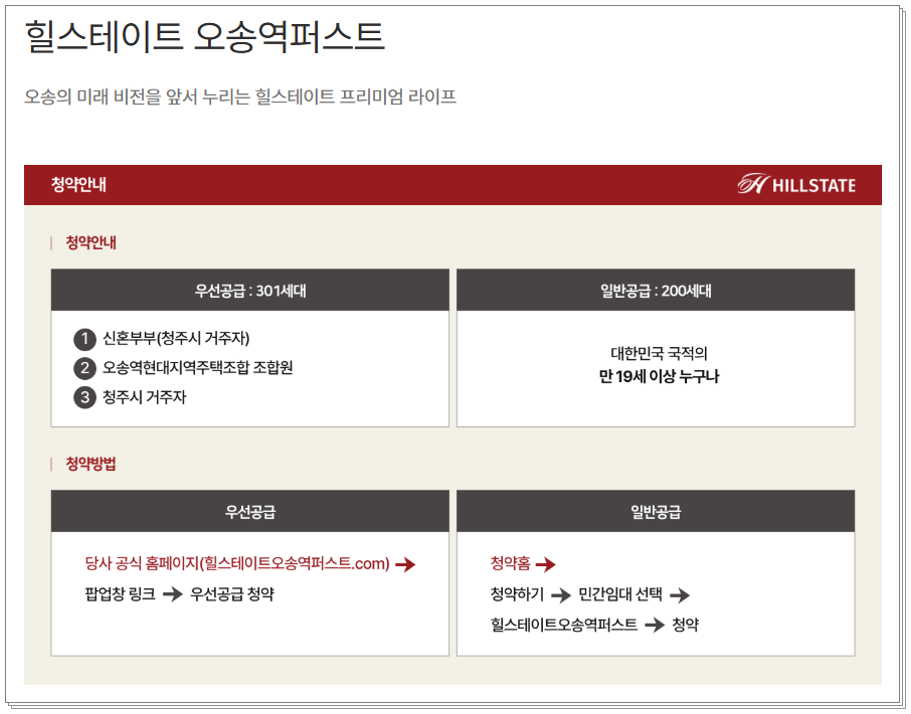 청주시 우선공급 301세대, 기타지역(전국) 200세대 공급으로