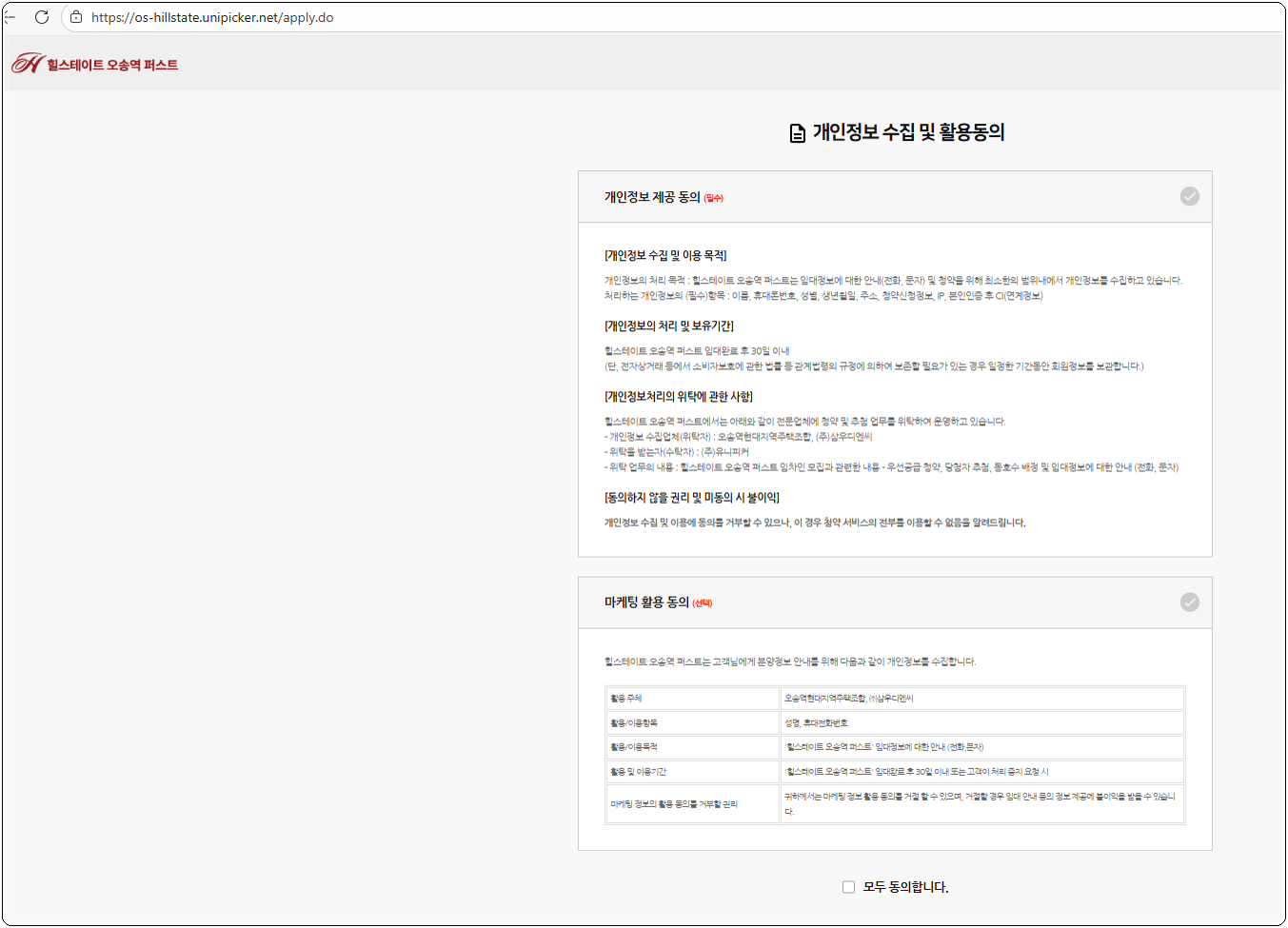 사이트에 접속을 하시면 우선공급 청약신청 바로가기를 클릭하시면 유니픽커 사이트인 힐스테이트 오송역퍼스트 민간임대 온라인 청약 사이트로 이동이 되며, 여기서 다시금 청약신청바로가기를 클릭하세요.