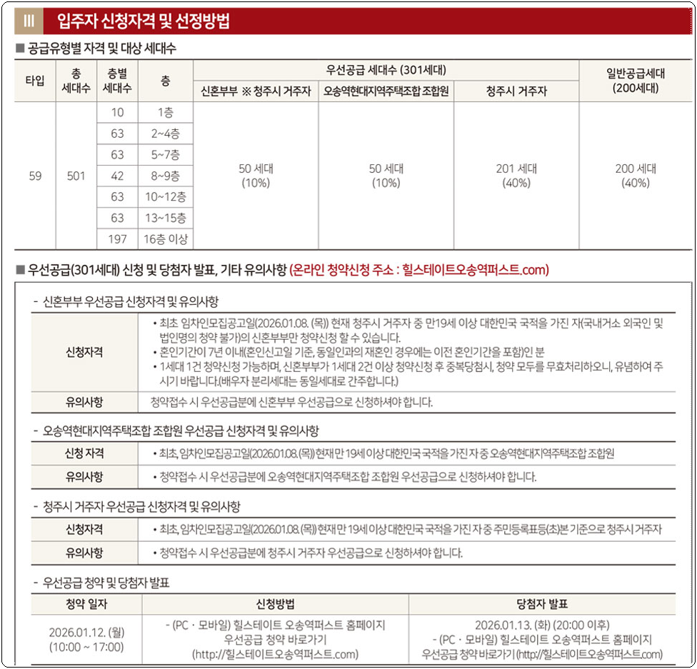 그러면 힐스테이트 오송역퍼스트 민간임대주택 우선공급 임차인모집공고 내용이 나옵니다.