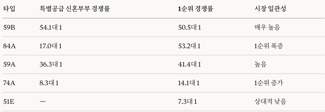 인사이트 ③ 74㎡대 경쟁률 10~15대 1 — 상대적 기회